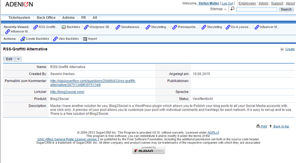 - Allgemeine Hinweise zu SugarCRM | bearbeiten
