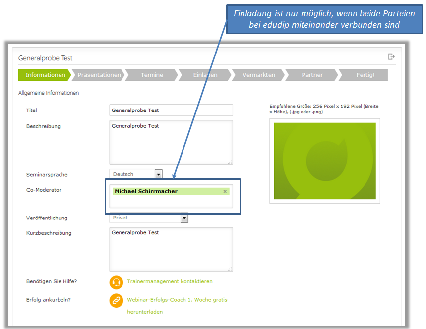 - Webinar in Edudip anlegen | bearbeiten