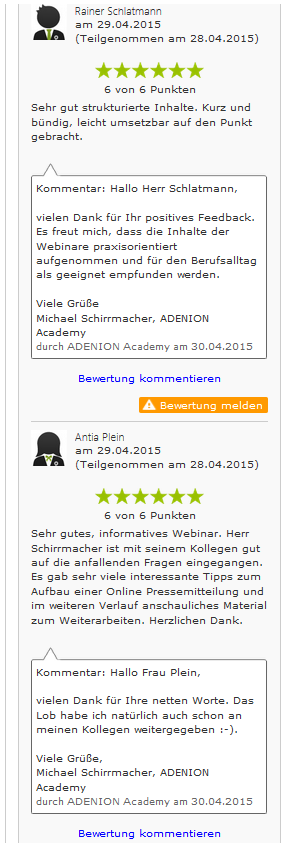 - Testimonials und Reviews | bearbeiten
